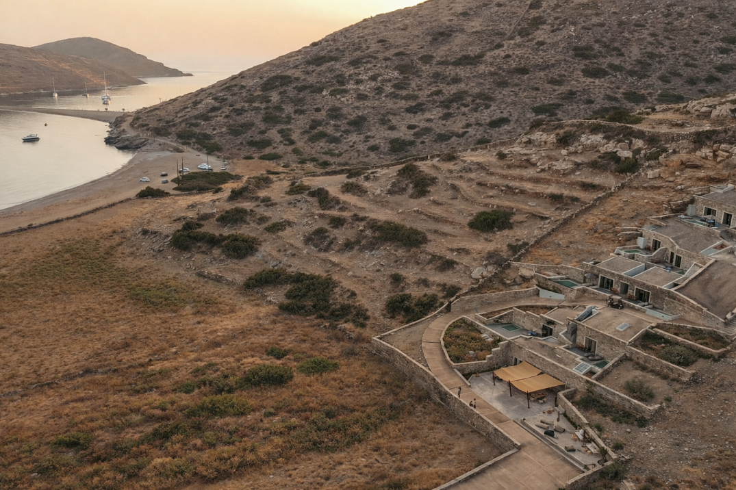 Ένα σύγχρονο, υπόσκαφο boutique retreat στην Κύθνο, σμιλεμένο μέσα στο τοπίο και απόλυτα εναρμονισμένο με την αισθητική και την ενέργεια του Αιγαίου.